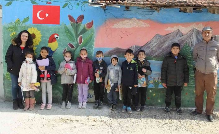 Burhaniye ilçesinde, emekli ziraat teknikeri Ergenç Çavuşoğlu Kızıklı Mahallesindeki atölyesinde resim çalışmaları yaparken, öğrencilere de yardımcı oluyor.