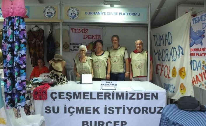 Burhaniye ilçesinde, Burhaniye Çevre Platformu (BURÇEP) temiz su için imza kampanyası başlattı. 27 Temmuzdan bu yana 500 imza toplayan çevreciler, standa “Çeşmelerimizden su içmek istiyoruz” yazarken, deniz kirliliğine de dikkat çekti.