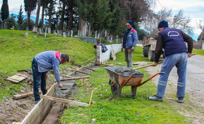 Balıkesir’in Burhaniye ilçesi Çoruk Mahallesi mezarlığının yıkılan duvarı, Burhaniye Belediye tarafından onarılarak yenilendi.