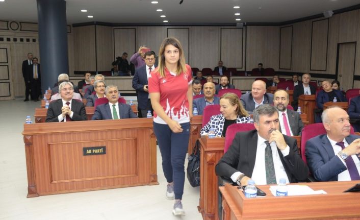 Büyükşehir Belediye Meclisi’nin toplantısına davet edilen Dünya Şampiyonu Judocu Habibe Afyonlu’ya altın ve çeşitli hediyeler takdim edildi. Büyükşehir Belediye Başkanı Yücel Yılmaz, Habibe Afyonlu’nun başarısını kutlayarak Balıkesir olarak daha çok dünya şampiyonu çıkarmak için spora destek vereceklerini açıkladı.