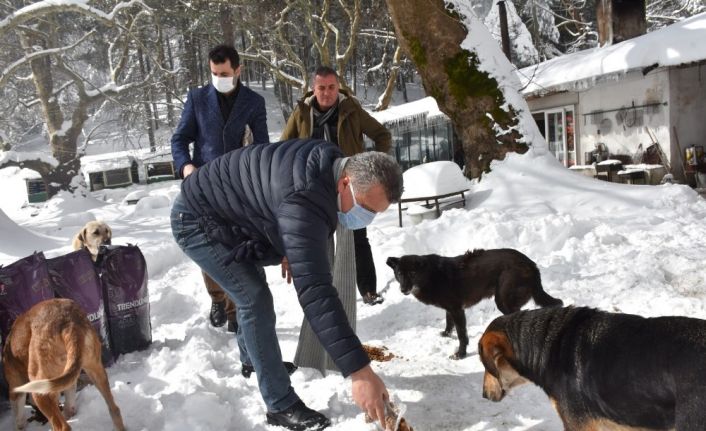 Balıkesir’in Edremit Belediyesi soğuk havalarda belenme noktalarının yanı sıra Kazdağları’nda yiyecek bulmakta zorlanan sokak hayvanlarının beslenmesi için mama ve yem dağıtımını arttırarak sürdürüyor.