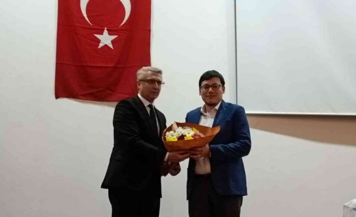 Konferans sonunda İl Kültür ve Turizm Müdürü Mehmet Mazak ve İlçe Milli Eğitim Müdürü Yasar Ciğer, Dr. Eren Yavuz’a teşekkürlerini sundular.