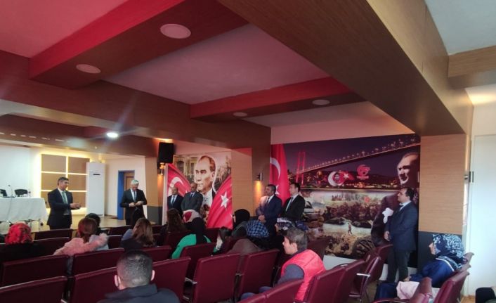 Edremit’ten Mithat-Fethi Büyükdalgıç İlkokulu’nda Aile Okulu Projesi ile ilgili olarak düzenlenen programa katılan İl Milli Eğitim Müdürü Ali Tatlı katılımcı kursiyerlere çiçek takdim etti.
