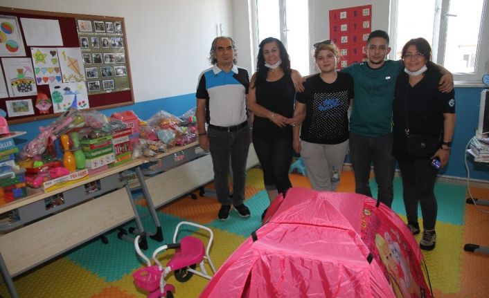 Bankadan kredi çekip engellilerin eğitimine destek veren Sevilay Akbaş, 13’üncü katkısını Balıkesir’de Altıeylül Mehmet Akif Ersoy Ortaokulu’na yaptı. Özel eğitim sınıfını tepeden tırnağa donattı, ana sınıfı öğrencilerine de oyuncak ve ekipman desteği sağladı. Okul müdürü Akın Ay, hayırsever Aktaş, ekibi ve sponsorlarına katkılarından dolayı şükran plaketi verdi.