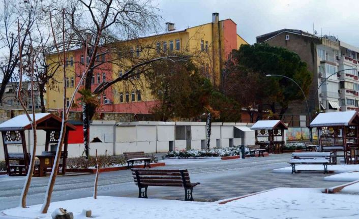Erdek ilçesinde dün öğle saatlerinde başlayan kar yağışı aralıklarla devam ediyor.