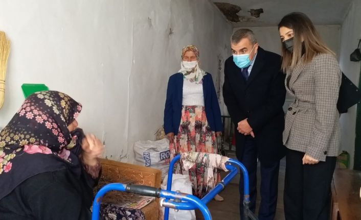 Kurs ziyaretinin ardından Karşıyaka Mahallesi Muhtarı Ayşe Ertürk ve mahalle sakinleriyle sohbet eden Kaymakam Atasoy, Erdek SYDV’dan yardım alan yaşlı bir kadın evinde ziyaret edildi.