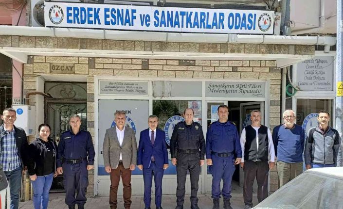 Kaymakam Atasoy, yaptığı açıklamada, “Erdek Esnaf ve Sanatkarlar Odası Başkanlığına yeni seçilen Vahit Kocabıyık ve yönetimini, Şoförler ve Otomobilciler Odası Başkanlığına tekrar seçilen Aydın Tekin ve yönetimini kolluk birim amiri arkadaşlarımız ile birlikte ziyarette ederek, çalışmalarında kolaylıklar ve başarılar diledik” dedi.