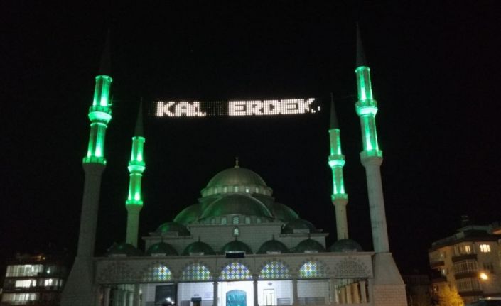Ramazan ayı nedeniyle Erdek Merkez Piri Reis Camisinde minarelerin arasına korona virüse karşı uyarı yapılması amacıyla "Evde Kal" yazılı mahya asıldı.