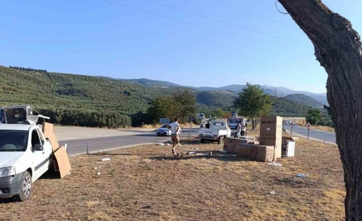 Erdek-Bandırma karayolunda meydana gelen trafik kazasında, beyaz eşya yüklü bir kamyonet devrildi.
