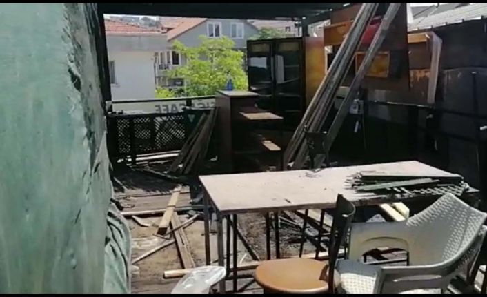 Balkesir’in Erdek ilçesi Maşatlık bölgesinde faaliyet gösteren kafenin teras katında çıkan yangın kısa sürede söndürüldü. Yangın anı ise kameralara yansıdı.