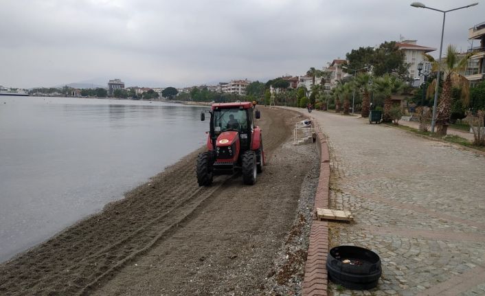 Balıkesir Büyükşehir Belediyesi yaz sezonuna yaklaştığımız bugünlerde Erdek’te kumsallar temizliyor.