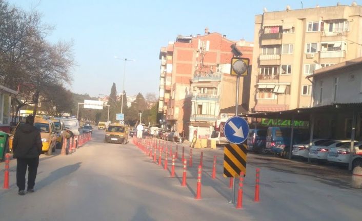Trafik sorununa dubalı çözüm Erdek girişi otogar önünde bulunan yol duba ile ikiye bölündü.