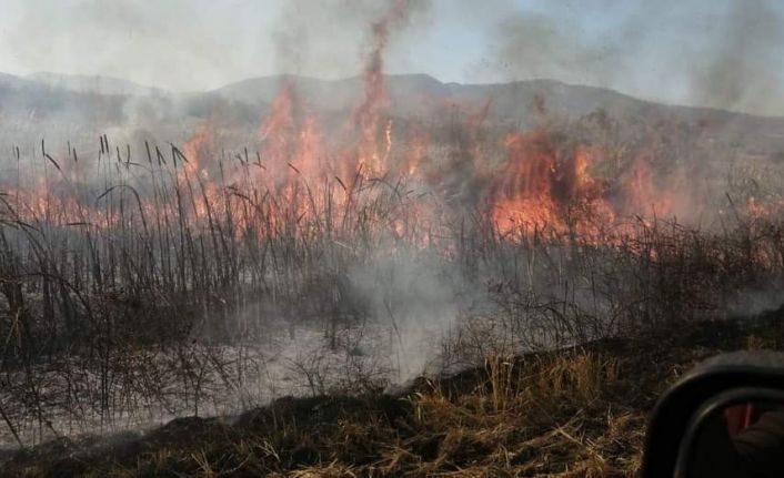 Balıkesir’in Gönen ilçesinde Bakırlı kırsal mahallesinde sazlık alanda yangın çıktı.