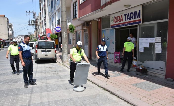 Yapılan açıklamalarda; “ bugün gerçekleştirilen uygulamalar neticesinde yol kenarlarını işgal eden esnaflar uyarılmış olup yol kenarlarına konulan dubalar, çiçekler, saksılar, flamalar, sandalyeler kaldırılmış ve esnafa bu tür işgaller devam ettiği takdirde cezai işlem uygulanacağı tebliğ edilmiştir” denildi.