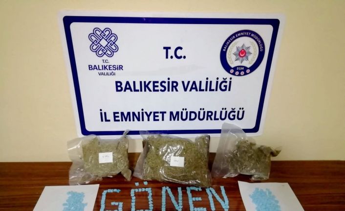 Gönen’de şüphe üzerine durdurulan bir araçta yapılan arama sonucunda 400 adet extaxy, 260 gram skunk, 560 gram bonzai, 508 gram esrar ve uyuşturucu kullanımında kullanılan aparatlar ele geçirildi. Gözaltına alınan 5 şüpheliden B.T ve N.R tutuklandı.