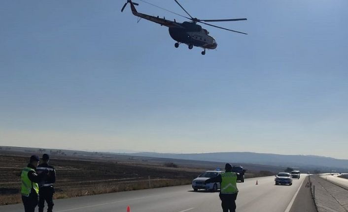 Balıkesir’in Bandırma, Gönen ve Manyas ilçelerinde eş zamanlı havadan helikopter destekli trafik denetimi gerçekleştirildi.