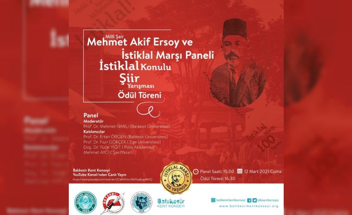 İstiklal Marşında dile getirilen değerlerimizi canlı tutmak ve bu çerçevede yazılacak şiirleri takdir etmek amacıyla 1 Ocak 2021 - 1 Mart 2021 tarihleri arasında düzenlenen yarışmaya şairler ve yazarlar ‘İstiklal Konulu’ şiirleri ile katıldı. Moderatörlüğünü Balıkesir Üniversitesi Rektör Yardımcısı Prof. Dr. Mehmet Narlı’nın yaptığı ve canlı olarak Balıkesir Kent Konseyi YouTube kanalında yayınlanan Milli Şair Mehmet Akif Ersoy ve İstiklal Marşı Paneli’ne Balıkesir Büyükşehir Belediye Başkanı Yücel Yılmaz, Balıkesir Üniversitesi’nden Prof. Dr. Ertan Özgen, Ege Üniversitesi’nden Prof. Dr. Fazıl Gökçek, Polis Akademisi’nden Doç. Dr. Yücel Yiğit ve Şair-Yazar Mehmet Aycı katıldı.