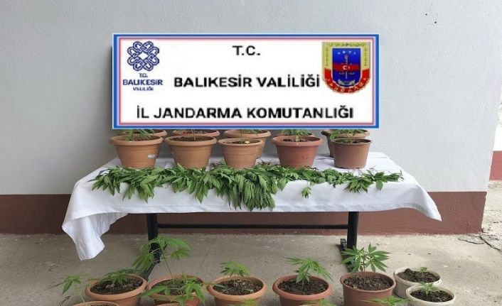 Balıkesir’in Karesi ilçesinde jandarma ekipleri 2 şüphelinin evine operasyon düzenledi. Yapılan operasyonda saksılar içinde yetiştirilmiş kenevir, esrar ve uyuşturucu kullanma aparatı ele geçirildi.,