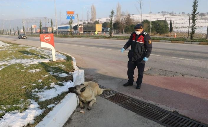 Balıkesir’in Karesi ilçesinde jandarma ekipleri Balıkesir-Bursa karayolununda bir benzin istasyonu yakınında bulduğu yaralı köpeği tedavi için hayvan barınağına teslim ettiler.