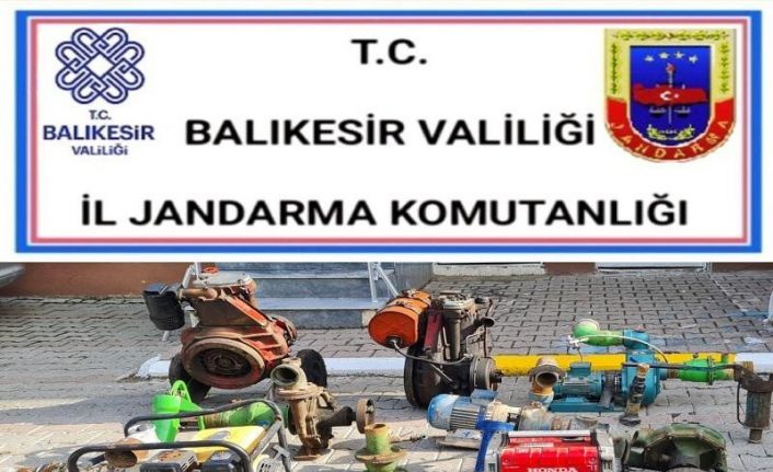 Balıkesir’in Kepsut ilçesinde Jandarma ekiplerine son günlerde gelen sulama araçlarının çalınması üzerine JASAT ekiplerinin yaptığı çalışmalarda 3 şüpheli şahıs çalıntı su pompası, jeneratör, dinamolar ve çalıntı tarım aletleri ile ele geçirildi.