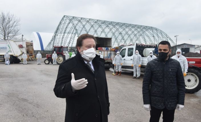 Karesi Belediyesi’nin rutin hizmetlerini sürdürürken, yeni tip korona virüs ile mücadele çalışmalarına da aralıksız devam ettiğini ifade eden Başkan Orkan, “Ekiplerimizle birlikte ilçemizin her yerinde olmaya çalışıyoruz. Bizim için önemli olan hemşehrilerimizin evde kalması. Bizlere İletişim Merkezimiz 444 99 10’u arayarak ihtiyaçlarınızı iletmeniz yeterli. Bizler elimizden gelen her türlü yardımı yapıyoruz ve yapmaya devam edeceğiz. Küçük Sanayimizde gerekli dezenfektasyon işlemlerimizi yapıyoruz. Yağmurun kesilmesinin ardından da yerleri dezenfekte edeceğiz. Karesi Belediyesi olarak her yerde gücümüzü göstermeye çalışıyoruz. Yeter ki siz evlerde kalın biz zaten sahada varız” dedi.