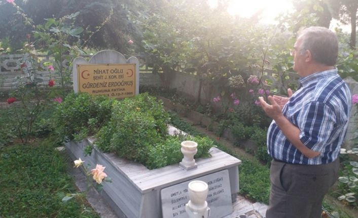 Kaymakam Ekrem Çalık, Erdek’in Ormanlı Mahallesi’nde Güneydoğu şehidi Jandarma Komando Er Gürdeniz Erdoğmuş’un kabrini ziyaret etti