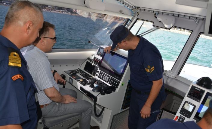 Sahil Güvenlik Akçay Kolluk Destek Tim Komutanlığınca Edremit körfezinde gerçekleştirilen denetimler hakkında bilgiler alan Kaymakam Odabaş, Sahil Güvenlik Kuzey Ege Grup Komutanlığına bağlı İlçemiz Akçay Kolluk Destek Tim Komutanlığı uhdesi ve emrine görevlendirilen KB-111 borda numaralı kontrol bot ile sahil denetimine katıldı.