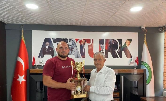 661. Tarihi Kırkpınar Yağlı Güreşleri Başpehlivanlık Yarı Final müsabakasında Başpehlivanlık Boyunda 3. olan Ertuğrul Dağdeviren, Manyas Belediye Başkanı Tancan Barçin’i makamında ziyaret etti.
