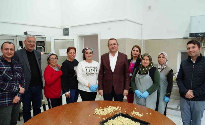 Ayvalık Belediyesi S.S Üretim ve Pazarlama Kooperatifi çatısı altındaki Üretim Mutfağı’nı ziyaret eden Ayvalık Belediye Başkanı Mesut Ergin, üretici kadınların el emekleriyle titizlikle hazırladıkları birbirinden lezzetli yöresel ürünlerin tanıda baktı tam puan verdi.