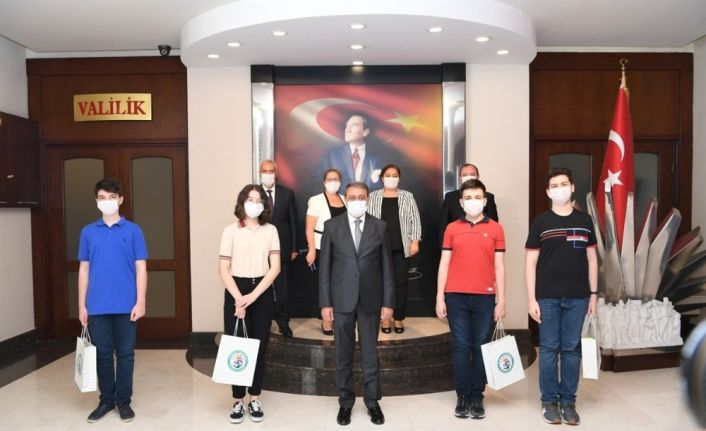 Liselere Giriş Sınavında (LGS) dereceye giren öğrenciler, İl Milli Eğitim Müdürü Yakup Yıldız, Balıkesir Açı Koleji Müdürü Berna Ayran, Bandırma Bahçeşehir Koleji Müdürü Mebrike Balvar ve Karesi Necip Fazıl Kısakürek Ortaokulu Müdürü Süleyman Koç ile birlikte Vali Hasan Şıldak’ı makamında ziyaret etti.