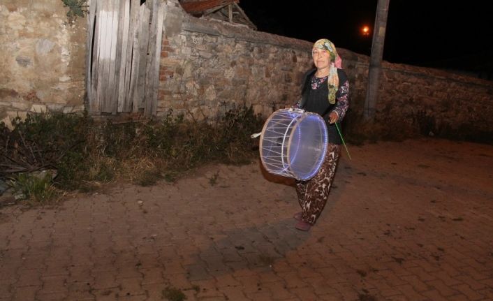 Balıkesir’in Manyas ilçesinde 5 çocuk annesi Sevgi Cankurt, bu ramazan ayında da komşularını sahura eline aldığı davulla kaldırdı.