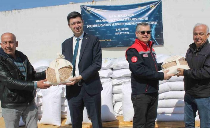 Balıkesir’in Manyas ilçesinde Tarım ve Orman Bakanlığı projesi kapsamında yüzde 75 devlet destekli tohumluk nohut dağıtımı yapıldı.