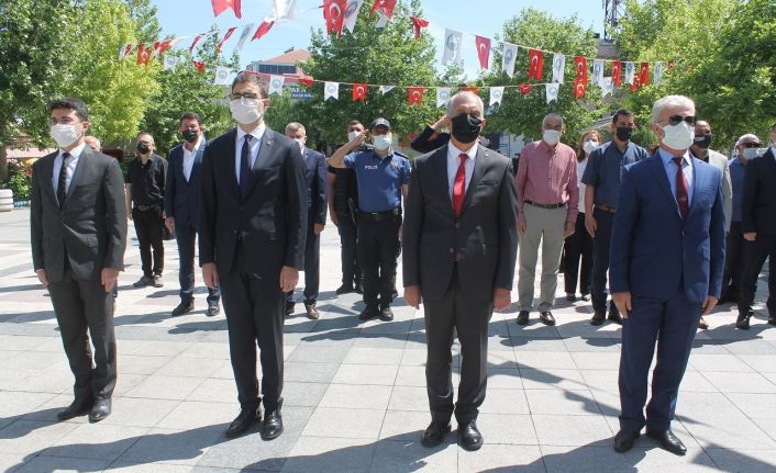 İlçe protokolünün Cumhuriyet Meydanında yerini almasından sonra İlçe Gençlik Hizmetleri ve Spor Müdürü Kudret Egen, 2 genç ile beraber Atatürk Anıtına çelenk sundu. Saygı duruşu ve İstiklal Marşının okunması sonrası Fatih Özel günün anlam ve önemini belirten konuşmasında "Binlerce şehit vererek sıkıntı ve yokluklar içinde, büyük özveriyle kurulan Türkiye Cumhuriyeti emanetini yaşatacak, gelecek kuşaklara da en iyi şekilde aktaracaktır." dedi.