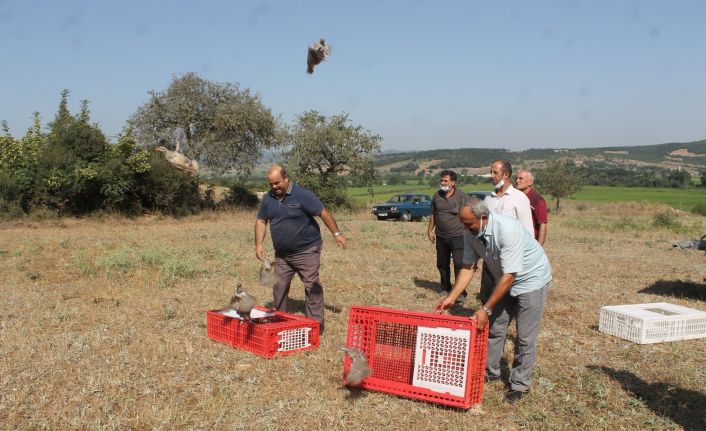 Yozgat keklik üretme çiftliğinden getirilen kınalı keklikler Manyas Gölü Avcılar ve Atıcılar Derneği üyeleri tarafından doğaya salındı.