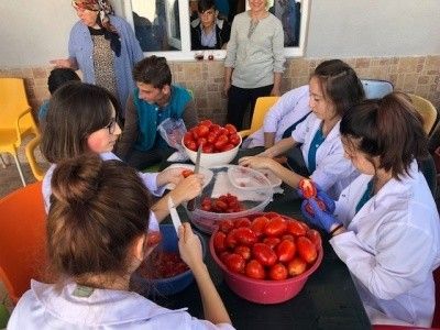 Manyas’ta öğrenciler salça üreterek para kazandı