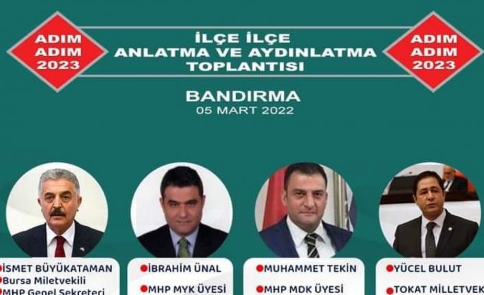 MHP " Adım Adım 2023, İlçe İlçe Anlatma ve Aydınlatma Toplantısı yarın Bandırma’ da yapılacak.