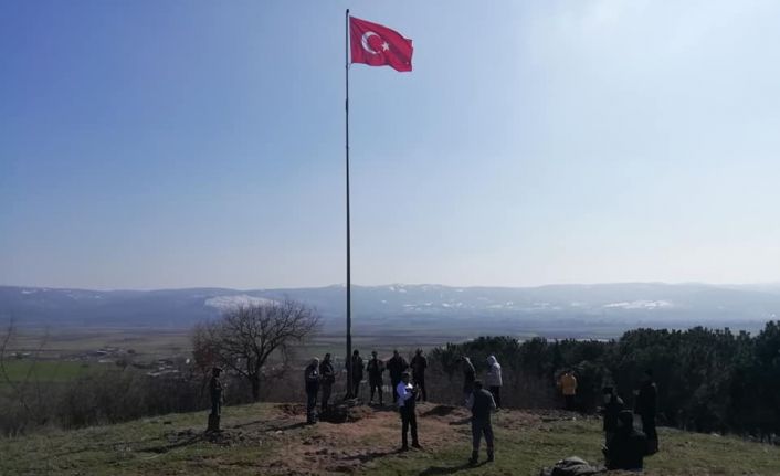 Kırsal Süleymanlı Mahallesinin dışında çevreye hakim bir tepe olan Yerlikaya mevkiine önce 12 metre uzunluğunda direk dikildi. Daha sonra ise 1,5 x 2.25 ebadında dev Türk Bayrağı çekildi.