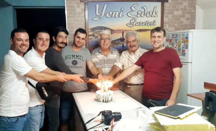 Yeni Erdek Gazetesi’nin yeni yayın yılına başlaması dolayısıyla gazetenin idari binasına gelen, Yeşilçam’ın deneyimli karakter oyuncularından Erol Tezeren ile birlikte yaş günü pastası kesildi.