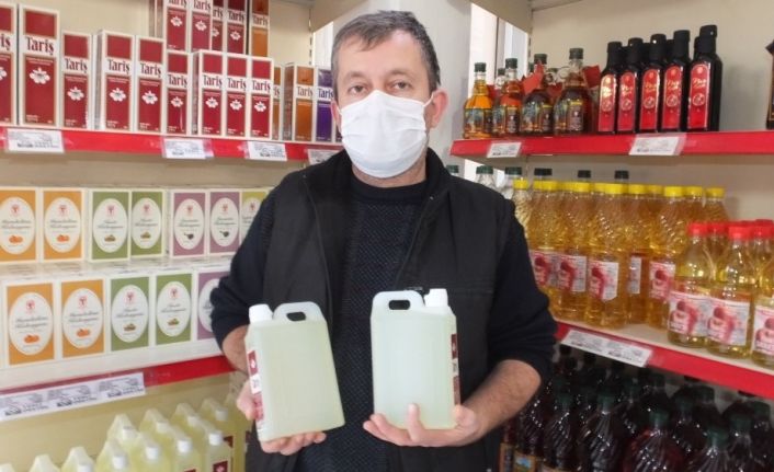 Kolonya çeşitlerini bulundurmaya çalıştıklarını anlatan Burhaniye 76 nolu Zeytin ve Zeytinyağı Tarım Satış Kooperatifi satış reyonu sorumlusu Ahmet Korkmaz, kolonyanın yanı sıra sirke satışlarında da büyük artış yaşandığını söyledi.