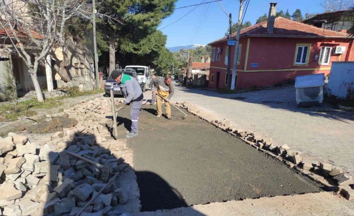 Balıkesir’in Burhaniye ilçesinin Pelitköy kırsalında parke taş yollar yenilenmeye başlandı.