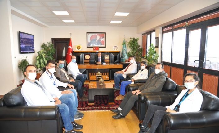 BAÜN Hastanesi Başhekim Yardımcısı Dr. Öğr. Üyesi Bahadır Çağlar ve beraberindeki Anabilim Dalı personeli de Rektör Prof. Dr. İlter Kuş’a desteklerinden dolayı teşekkür etti.