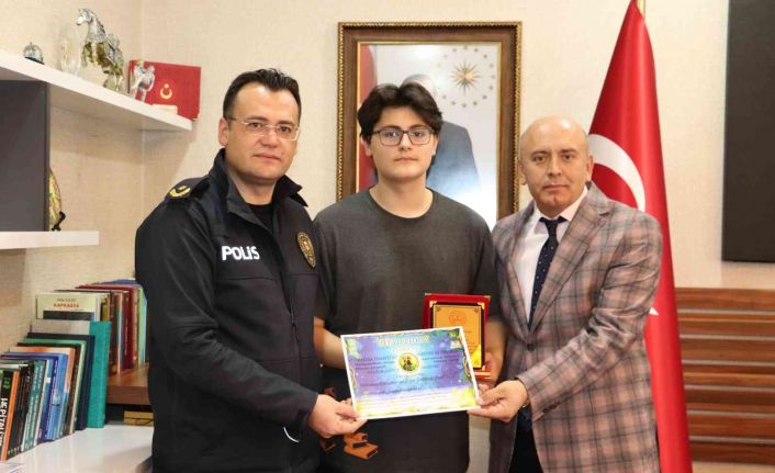 Doğal yaşamı tema alan resim kategorisinde büyük bir hüner gösteren Esma Kudar ve Ziya Göktuğ Özer, Edremit İlçe Millî Eğitim Müdürü Yakup Özbek tarafından makamında ağırlanarak başarılı öğretmen ve öğrencisine plaket takdim edildi.