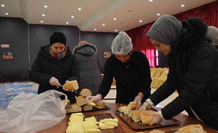 Bozulmayacak ürünlerle hazırlanan sandviçler, paketli ürünler ve su tek tek poşetlenerek dağıtıma uygun hale getiriliyor. Kumanya hazırlıkları aralıksız devam ederken hazır olan paketler bölgeye giden yardım araçlarına yüklenerek hızlı ulaşım sağlanıyor. Çocuklar da yardım çalışmalarına katılıyor.