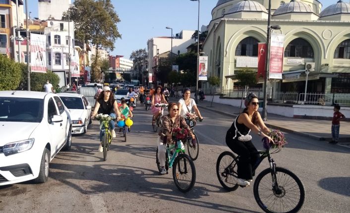 Bandırma Cumhuriyet Caddesinde başlayıp Cumhuriyet Meydanında sona eren bisiklet turunda yaklaşık 50 kadın pedal çevirdi.