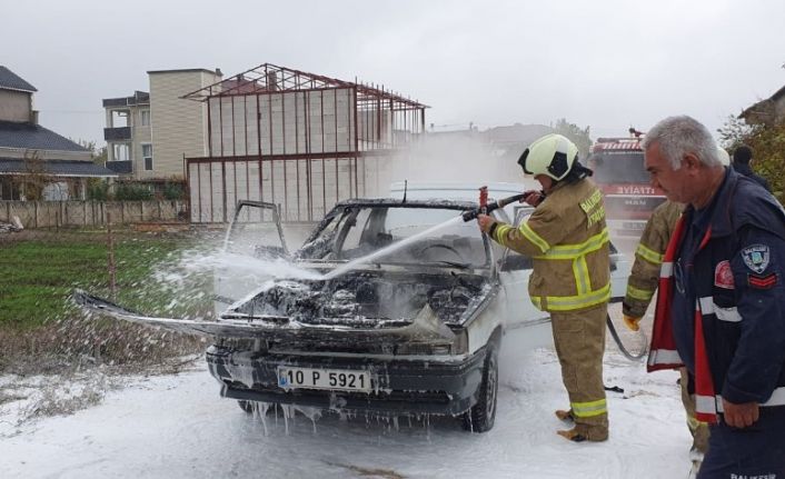 Balıkesir’in Susurluk ilçesinde kısa kontak yapılan otomobil yanarak kullanılmaz hale geldi.