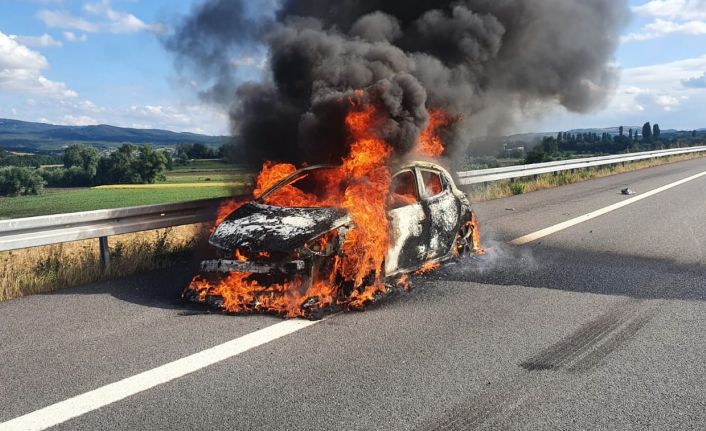 Balıkesir’in Susurluk ilçesinde İzmir-İstanbul otoyolunda seyir halindeki araç bilinmeyen bir sebepten dolayı yanarak, kullanılmaz hale geldi.