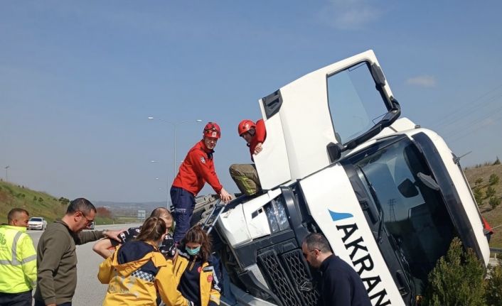 Edinilen bilgilere göre, sürücü V.A.’nın direksiyon hakimiyetini kaybetmesi sonucu İstanbul-İzmir Otoyolu İzmir istikameti Susurluk ilçesi Yahyaköy mevkinde 16 BFZ 459 plakalı çekici ve 16 ALG 191 plakalı dorsenin karıştığı tek taraflı trafik kazası meydana geldi. Kazada sürücü V.A. araç içerisinde sıkıştı.