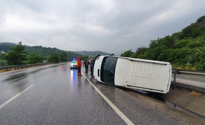 Balıkesir’in Susurluk ilçesinde yağış nedeni ile kayganlaşan yolda meydana gelen tek taraflı trafik kazasında direksiyon hakimiyetini kaybeden sürücünün aracı takla attı.