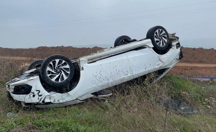Takla atan araçtan yara almadan çıktı