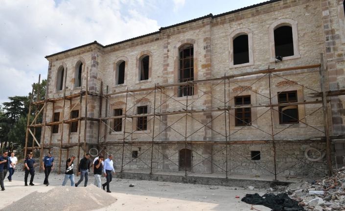 İvrindi İlçesinde restorasyonu gerçekleştirilen tarihi Gazievrenos Ortaokulunda restore çalışmaları devam ediyor. Vali Hasan Şıldak restorasyonunu yerinde inceledi.